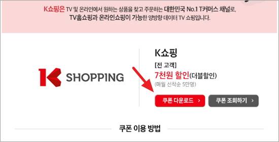 이 쿠폰번호를 K쇼핑 홈페이지에서 등록하면 됩니다.